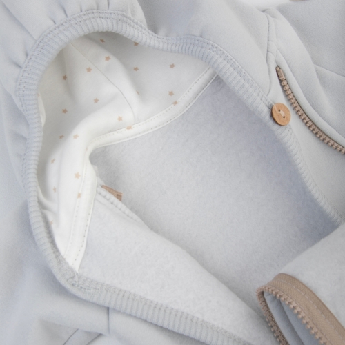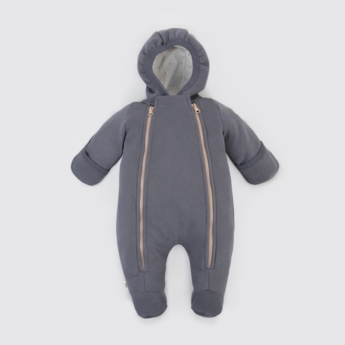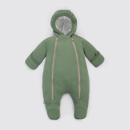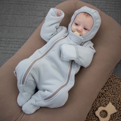 Две молнии по бокам от горловины до середины ножек, что делает процесс одевания малыша простым и удобным.