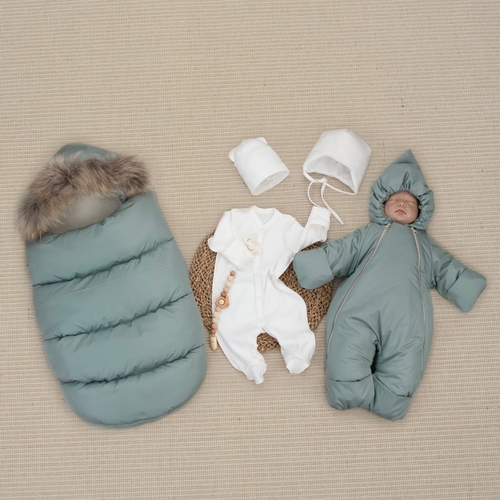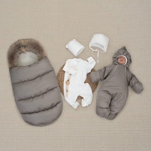 Зимний комплект на выписку 5 предметов KinderLitto "Скандинавия" с опушкой.