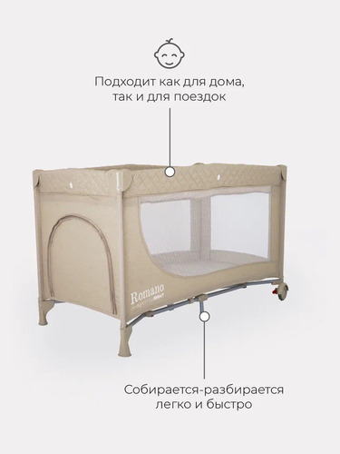 Так же Rant Romano надежный, безопасный манеж для самостоятельных игр ребенка. Благодаря сетчатым вставкам вам будет хорошо видно ребенка, а ребенку вас. Так же сетчатые вставки обеспечат хорошую вентиляцию внутри манежа (кроватки). Все углы закрыты специальными пластиковыми накладками. Материал манежа крепкий и абсолютно безопасный для ребенка.