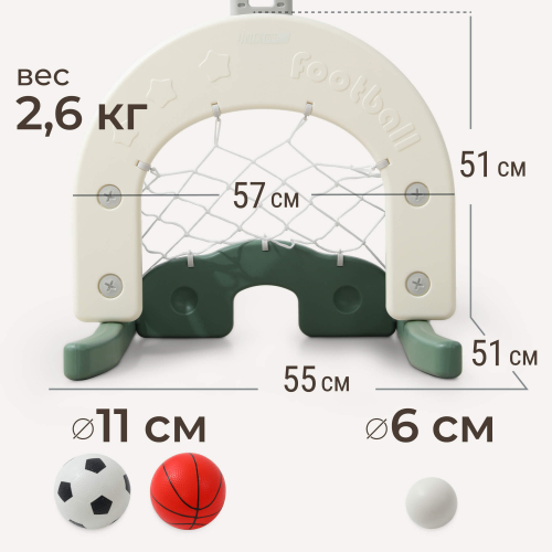 Детский игровой комплекс UNIX Kids Дино / Dino 3 в 1 предназначен для активного отдыха ваших детей дома и на улице. Уникальность комплекса заключается в возможности совмещать три популярных вида спорта — баскетбол, футбол и хоккей, позволяя ребенку выбрать наиболее интересный вид активности. Благодаря своей универсальности и продуманному дизайну, данная модель идеально подойдет как для малышей, только начинающих знакомство со спортом, так и для юных спортсменов, стремящихся развить свои способности.