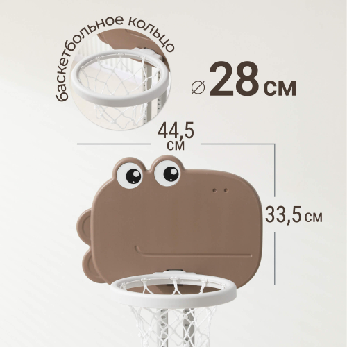 Центральным элементом игрового комплекса является детская баскетбольная стойка, выполненная из высококачественного пищевого пластика 4-го класса, соответствующего требованиям ГОСТ. Этот материал обеспечивает абсолютную безопасность для здоровья ребёнка, поскольку гипоаллергенен и не выделяет вредных веществ. Изделие может использоваться на открытом пространстве, оставаясь устойчивым к воздействию ультрафиолетового излучения.