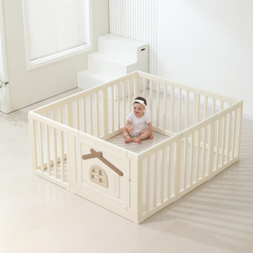 Большой детский игровой манеж UNIX Kids Classic Tree House / Классик домик на дереве 130 x 130 см бежевый