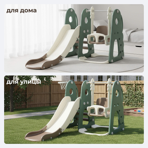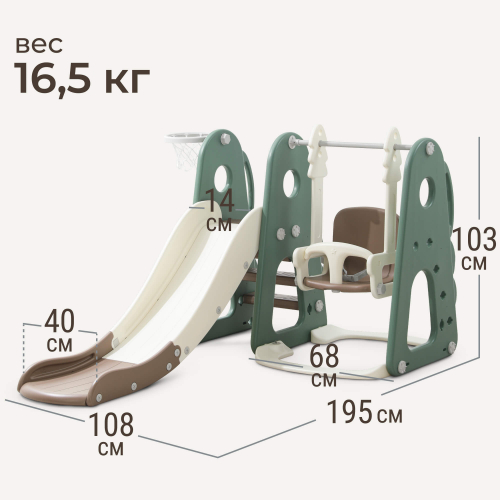 - Комплектация: Горка, качели, баскетбольное кольцо.