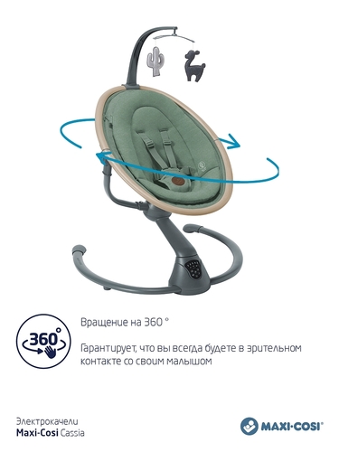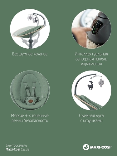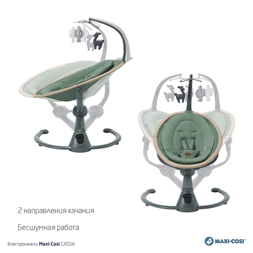 Электрокачели Maxi-Cosi Cassia SWG - стильные электронные качели, предназначенные для того, чтобы малыш всегда мог находиться в поле зрения родителей, при этом в безопасном, удобном и интересном месте.