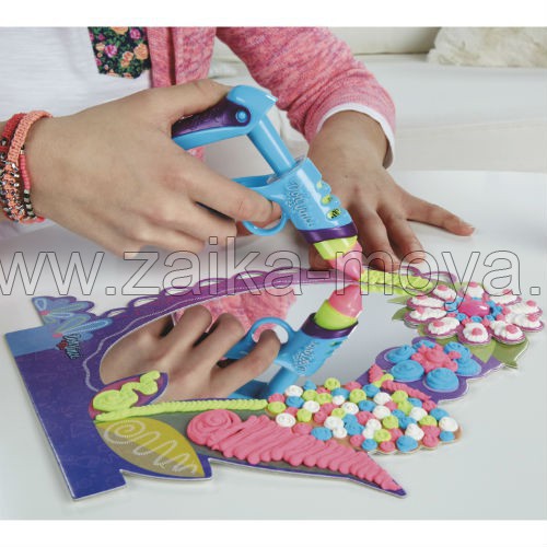 На макет туалетного столика уже нанесен рисунок, ваша задача состоит в том, чтобы воспроизвести этот рисунок с помощью пластилина и пистолета. Поместите баночку нужного цвета в специальное отверстие и сожмите пистолет. Чем сильнее вы его сожмете, тем больше пластилина выдавится и узор можно сделать толще.