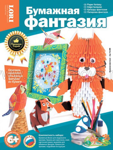 Занятия с набором "Бумажная фантазия" - это отличное развлечение для всей семьи. Немного труда и терпения - и вы своими руками изготовите: шесть ярких фигурок с помощью простой техники классического оригами, рыжего котика из бумажных модулей, красивое панно в рамке в технике квиллинг и объемные фигурки.