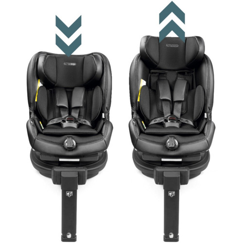 Следует за ростом ребенка. Подголовники и ремни регулируются одновременно в 6 положениях.