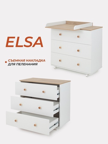 Комод RANT ELSA 80 см (Рант Эльза) - вместительный, стильный комод со съемным пеленальным столиком. Оригинальность комода в его непревзойденном дизайне и высоком качестве. Сочетание белого и натурального цвета придает комоду свежесть, уют и возможность легко вписать практически в любой дизайн.