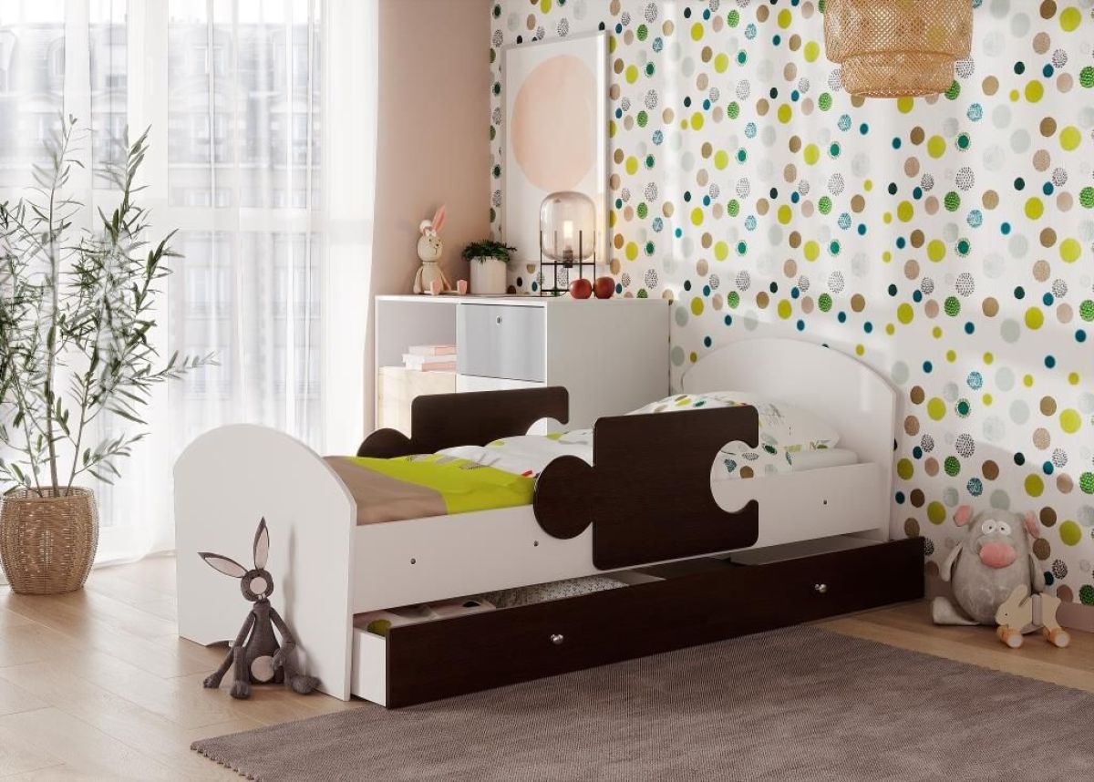 Кровать «Мозаика» — яркая, стильная кровать в детскую. Борта с двух сторон кровати обезопасят Вашего ребенка от падения. Наличие выдвижных ящиков позволит разместить постельное белье, вещи, игрушки и все необходимое.