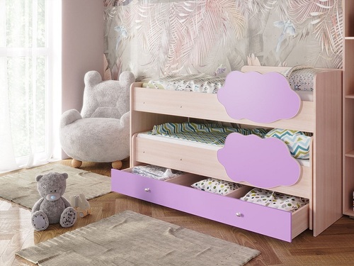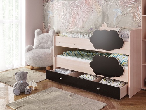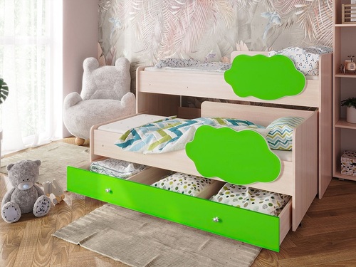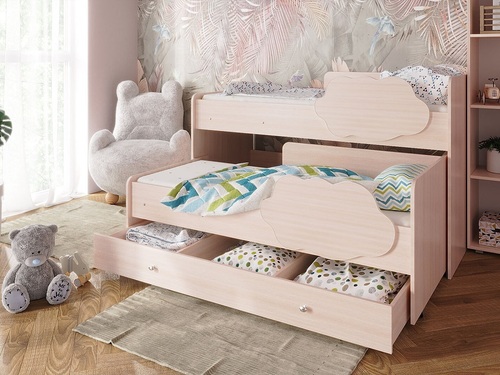 Выкатная двухъярусная кровать Соник с ящиком занимает минимум полезной площади.