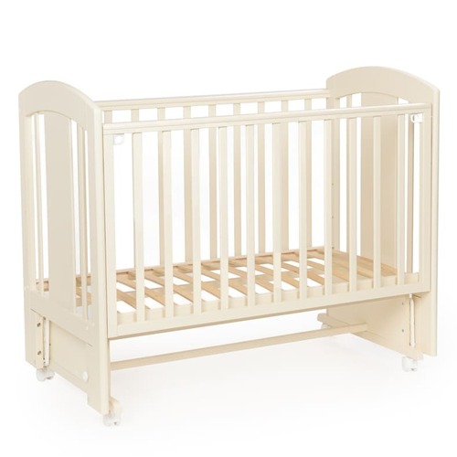 - кроватка имеет четыре поворотных колёса, для перемещения кроватки в комнате, для установки в неподвижном положении на двух из них имеются стопоры;