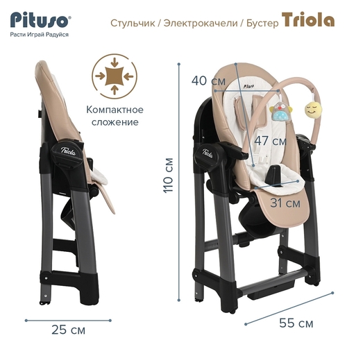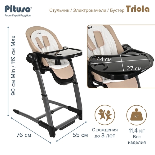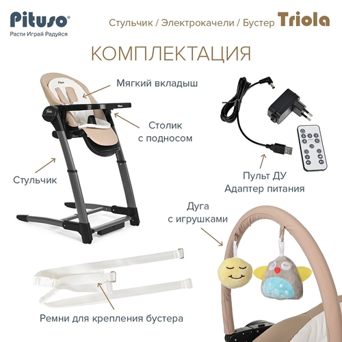Стульчик для кормления Pituso Triola 3 в 1 арт. SG116 Это модель совмещающая функции качелей,стульчика и бустера. Зная, как быстро растет малыш, мы хотим обставить дом универсальной детской мебелью «на все случаи жизни» для экономии места.