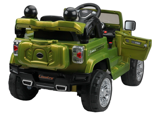 Для большей реалистичности джип оснащен зеркалами заднего вида, лобовым стеклом, функциональным багажником, в который можно сложить необходимые в дороге вещи и встроенной магнитолой.