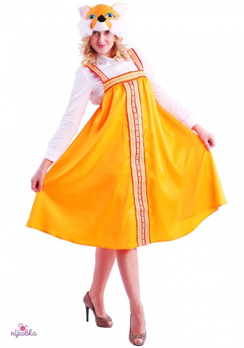 Карнавальный костюм для взрослых Лиса Патрикеевна станет вашим любимым праздничным нарядом. В нем вы можете как проводить праздник с детьми, так и устроить сюрприз для коллег и друзей на корпоративе или свадьбе. А еще он может пригодиться вам для костюмированных представлений и маскарадов. Комплект костюма состоит из сарафана в русском народном стиле и шапки-маски.