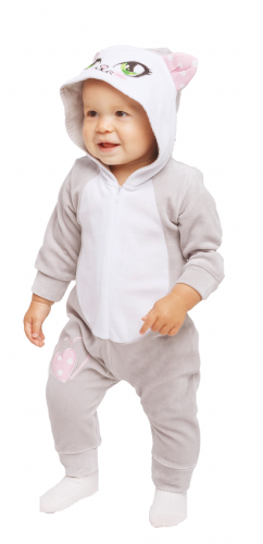 Прекрасный карнавальный костюм Кошечки отлично подойдет самым маленьким девочкам. Костюм Кошечка состоит из плюшевого комбинезона с капюшоном. На капюшоне изображена мордочка кошечки с объемными ушками. Карнавальный костюм выполнен в темно-сером и белом цветах. Комбинезон на застежке спереди. Костюм кошечки отлично подойдет детишкам до 1 года на рост 74 см.