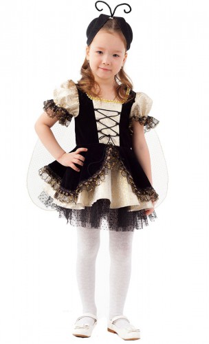 Карнавальный костюм Муха Цокотуха является интерпретацией известного всем образа из одноименной сказки Корнея Чуковского. Это добрая и щедрая героиня, которая попала в лапы к Пауку, но была спасена храбрым Комариком. Спектакли по мотивам этой сказки часто ставят в школах и детских садах. Так что такой карнавальный костюм точно будет иметь успех. В комплект наряда входит платье и ободок.