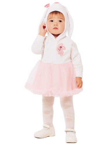 Карнавальный костюм Зайка из серии "Ладушки-игрушки" для малышей до 1 года. Милый комбинезон-боди с ушками и юбочкой для девочки. Материал - натуральный хлопок. Расцветка бело-розовая.