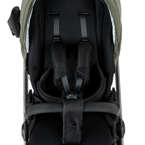 Безопасность обеспечивается пятиточечными ремнями с магнитным замком и откидным бампером.