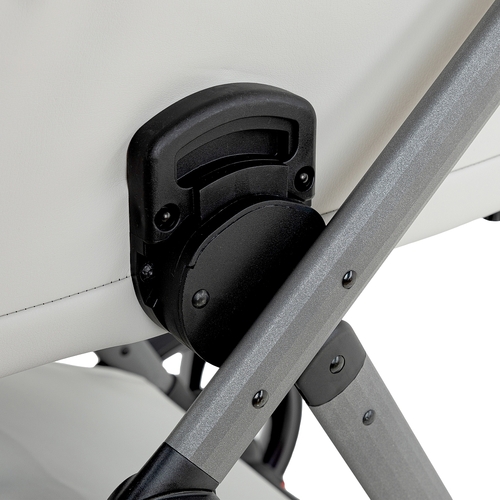 Рама складывается "книжкой" одним легким движением. Складывание возможно вместе с прогулочным блоком, независимо от того, каким способом он установлен. В сложенном виде коляска становится компактной, ее легко поместить в багажник или переносить с помощью транспортного ремня.
