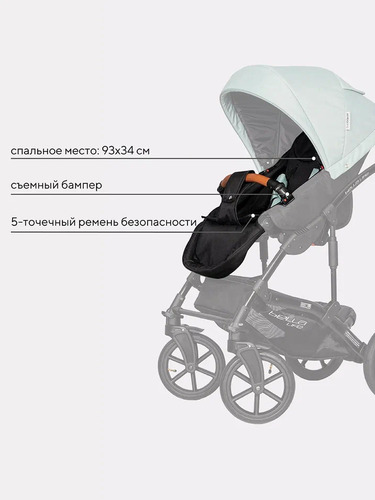 Съемный бампер, спинка с плавной бесступенчатой регулировкой раскладывается до горизонтального положения, подножка регулируемая.