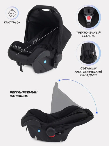 Модель состоит из трех съемных блоков, которые устанавливаются на раму в зависимости от возраста ребенка. В комплекте уже есть все необходимые аксессуары для прогулки. Купив коляску, вы сразу сможете пойти гулять с ребенком. Автокресло позволит безопасно перевозить ребенка с рождения до 1 годика безопасно и комфортно. Так же автокресло устанавливается на раму коляски.
