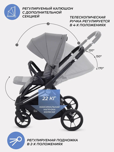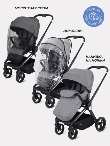 Комплектация: прогулочный блок, шасси, накидка на ножки, москитная сетка, дождевик.