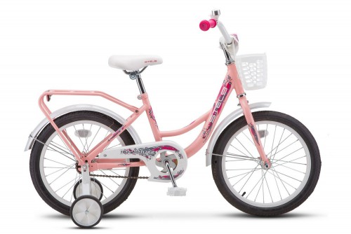 Велосипед, предназначенный для девочек в возрасте от четырех до восьми лет, без переключения передач. Технические особенности: стальная рама Hi-Ten, жесткая стальная вилка, одинарные алюминиевые обода, ножные педальные тормоза, защита цепи, съемные боковые колеса, длинные крылья, багажник, передняя корзинка, звонок. Подходит для обучения и прогулочного катания в городских условиях. Диаметр колес - 18 дюймов. Вес - 12,65 кг.
