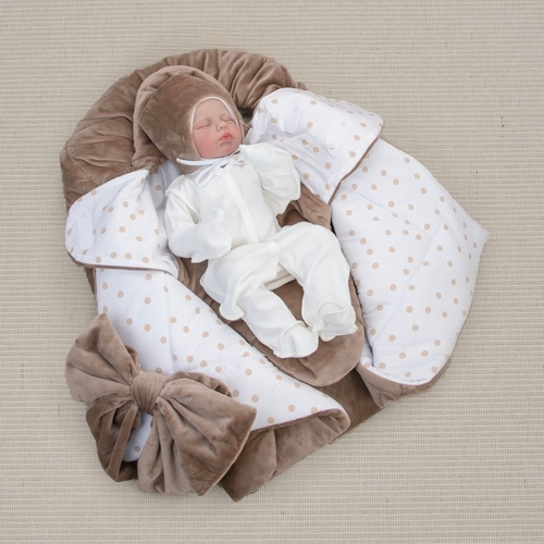 - Пеленки-трансформера: верх - плюш (п/э 100%), наполнитель синтепон 100 г/м2 (п/э 100%), подклад: кулир высшего качества (хлопок 100%)