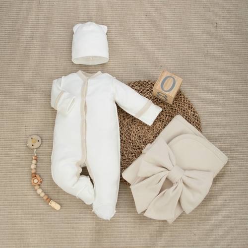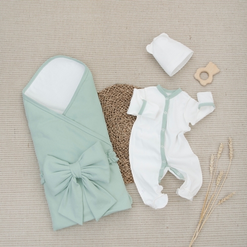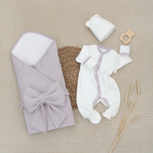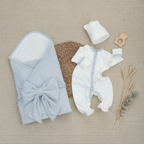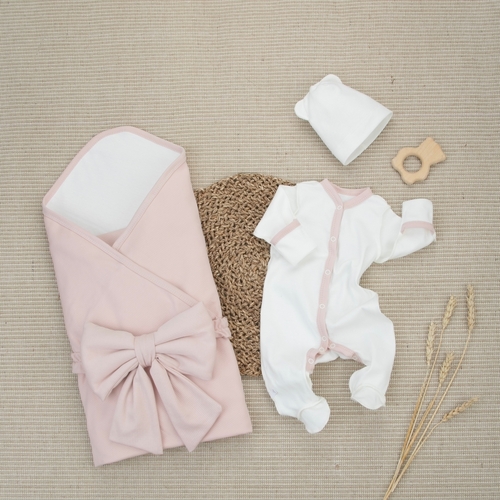 Мягкий и в то же время нарядный комплект – отличный вариант для выписки из роддома летом.
