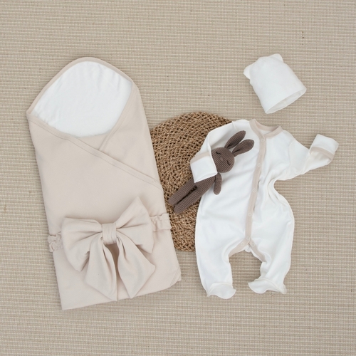 Универсальный комплект на выписку из 4 предметов - KinderLitto "Новый Капучино. Плед"