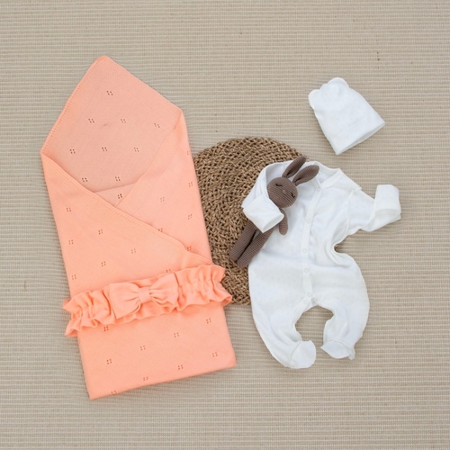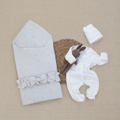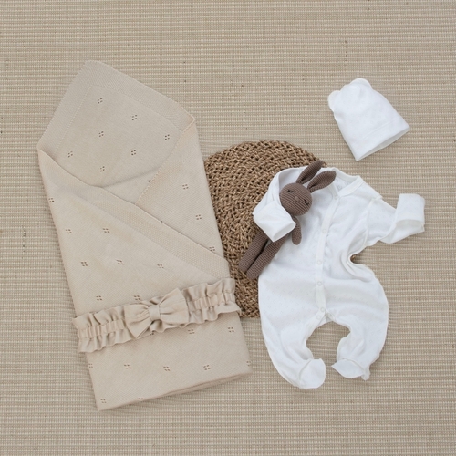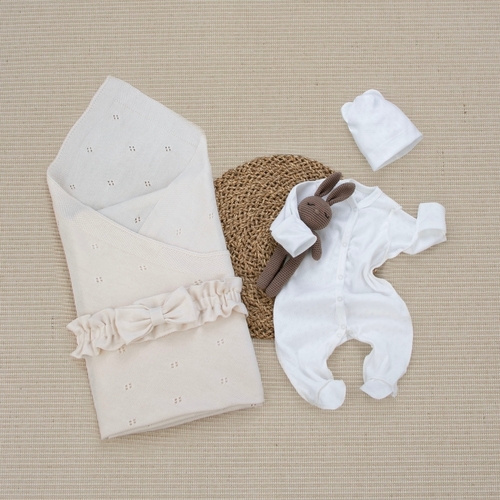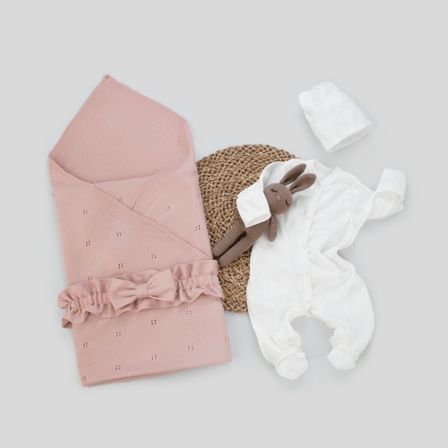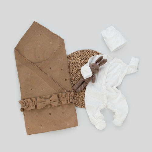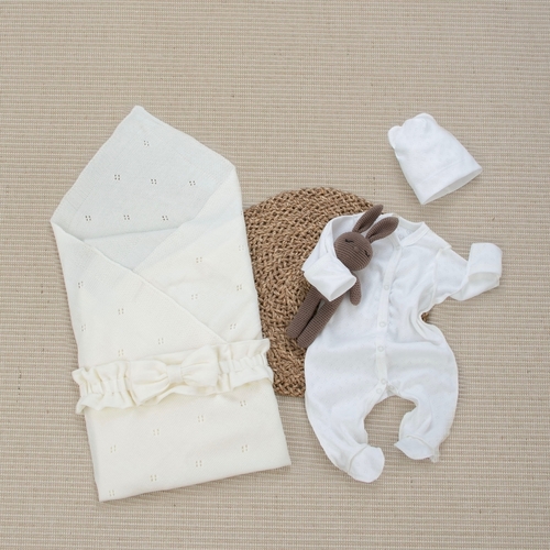 Мягкий и в то же время нарядный комплект – отличный вариант для выписки из роддома летом.