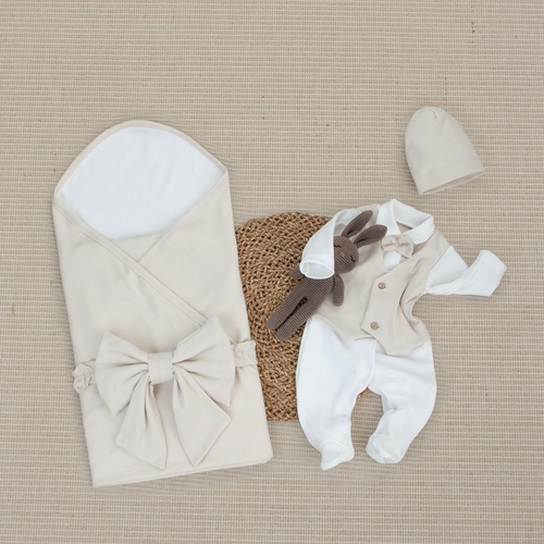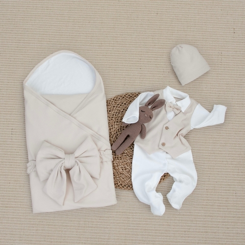 Мягкий и в то же время нарядный комплект – отличный вариант для выписки из роддома летом.