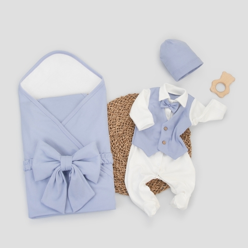 Универсальный комплект на выписку из 4 предметов - KinderLitto "Новый Юный Джентльмен. Плед"