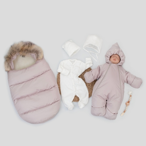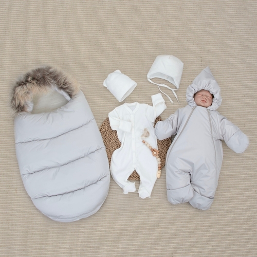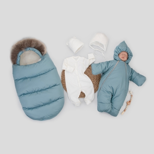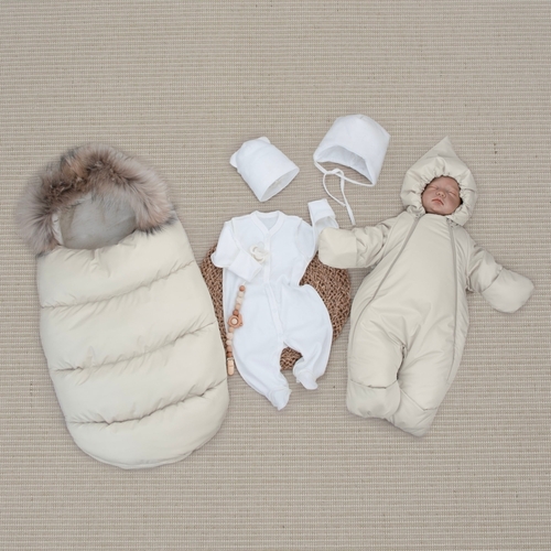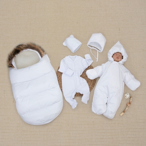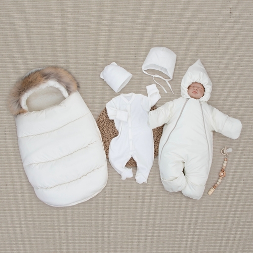 Зимний комплект на выписку 5 предметов KinderLitto "Скандинавия" с опушкой.