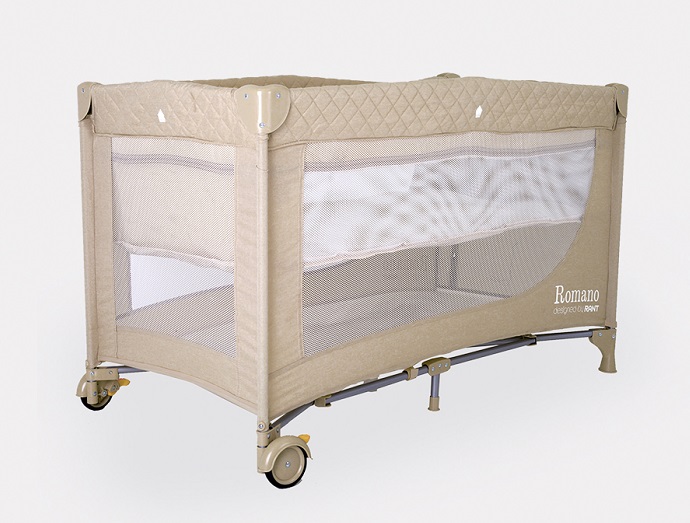 Детский манеж-кровать Rant Romano - двухуровневая детская кроватка с компактным сложением, небольшим весом и колесами для перемещения по квартире, дому. Прекрасный вариант кровати для гостей, путешествий, "дачной" кроватки, для выездов на природу.