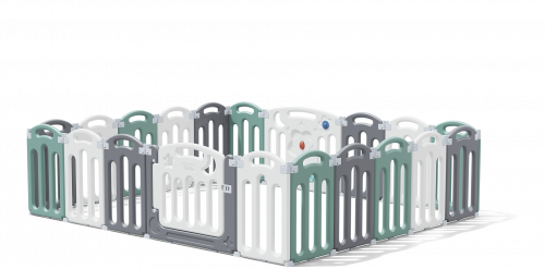 Количество и размер панелей: Манеж Unix Kids 225x188 Color - Панель малая (ширина 37см) - белая 6 шт / серая 6 шт / зеленая 6 шт.; Панель Бизиборд (ширина 75см) 1 шт.; Панель Вход (ширина 75см) 1шт
