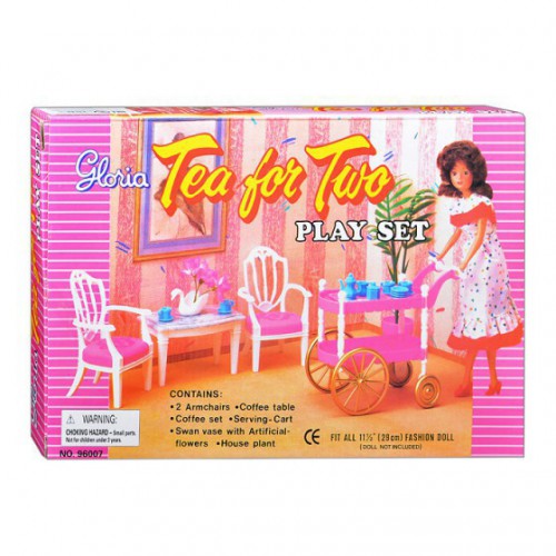 Мебель Чай для двоих арт. 96007 Дизайн этой игрушечной мебели отлично будет сочетаться с другими наборами этой серии. На тележке можно привезти завтрак или обед на стол, за которым будут сидеть подружки-куклы.
