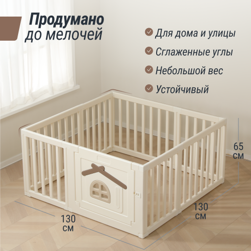 Большой детский игровой манеж UNIX Kids Classic Tree House / Классик домик на дереве 130 x 130 см бежевый