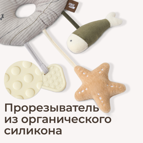 Развивающая игрушка-прорезыватель для новорожденных 0+ UNIX Kids Кит создана специально для малышей с первых дней жизни. Эта оригинальная подвесная игрушка незаменима в развитии вашего ребёнка благодаря своему уникальному дизайну и высоким стандартам качества материалов.