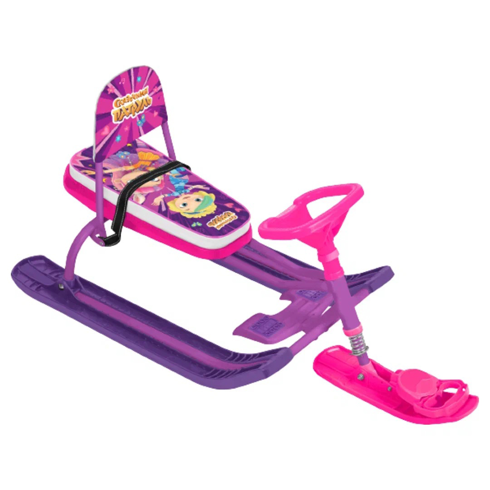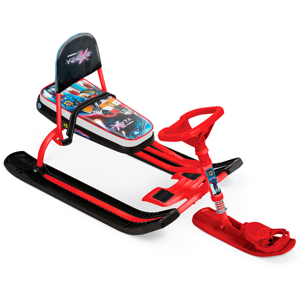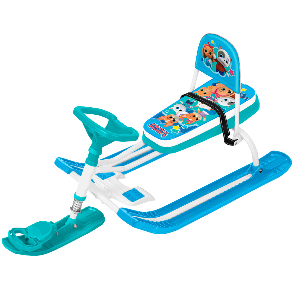 Снегокат предназначен для перевозки детей от 4 до 12 лет по плотному снегу или льду, катанию с горок. Имеет сварную конструкцию из стальных труб, пластиковых элементов и мягкое сиденье, обтянутое искусственной кожей с рисунком. Буксировочный трос с автоматической намоткой. Усиленный тормоз эффективен на обледенелой поверхности. Спинка съемная складная. Комплект наклеек на снегокат в подарок!