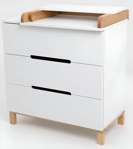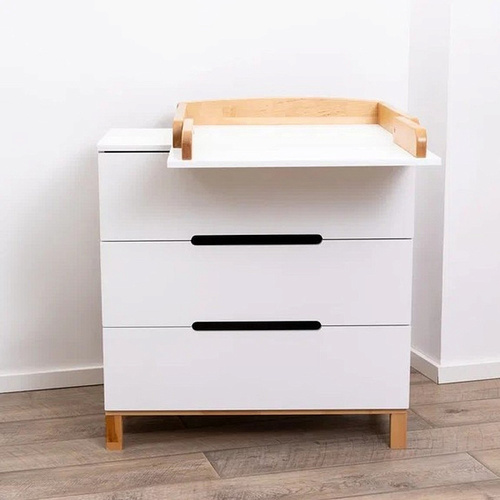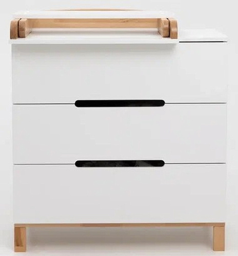 Глубокие ящики вместят в себе необходимое для малыша: средства для ухода, пелёнки, одежду и постельное белье. Плавный и тихий ход выдвижных ящиков не потревожит сон малыша, а ножки из натурального дерева придают комоду большую устойчивость.