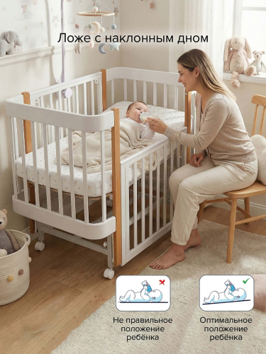 Кроватку можно использовать как приставную к родительской для совместного сна с малышом.