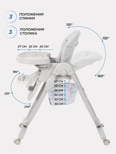 - 3 положения наклона спинки, включая положение для самых маленьких