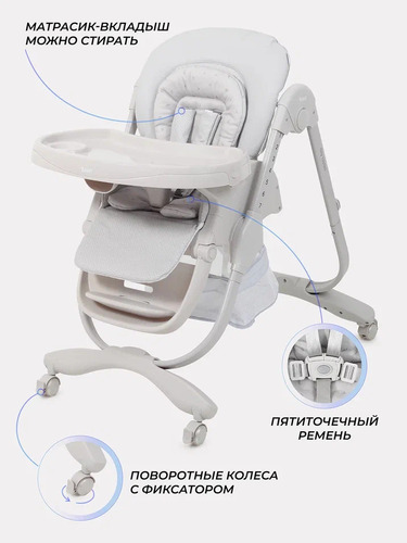 Детский стульчик для кормления Rant Cafe покорит вас: оригинальным дизайном; всеми необходимыми регулировками; двойной столешницей; возможностью зафиксировать столешницу на раме; бесшумными силиконовыми колесами; корзиной под сиденьем; мягким матрасиком-вкладышем; чехлом из практичной экокожи.