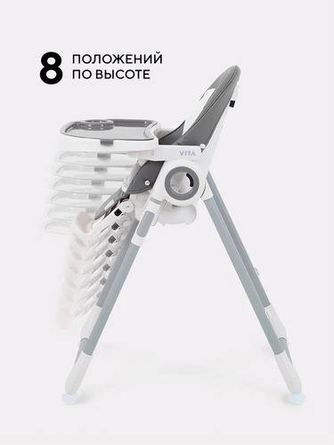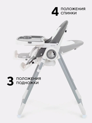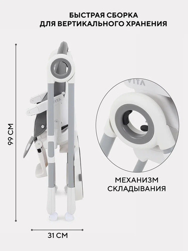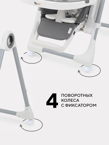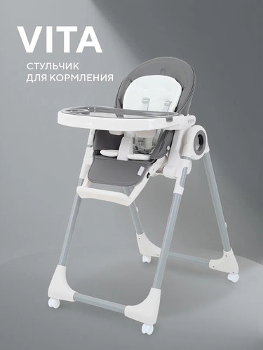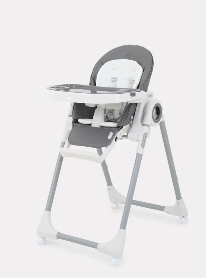 Детский стульчик для кормления Rant Vita покорит вас: эффектным дизайном; всеми необходимыми регулировками; двойной столешницей; возможностью зафиксировать столешницу на раме; колесиками со стопором; компактным вертикальным хранением; мягким вкладышем-матрасиком; роскошным чехлом из экокожи.