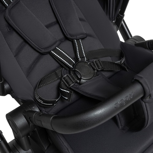 Безопасность маленького пассажира обеспечивают поворотный откидной бампер и пятиточечные ремни с мягкими накладками. Ремни регулируются по высоте в соответствии с ростом ребёнка, а бампер выполнен из качественной экокожи. Верхние ремни можно отстегнуть, но полностью убирать их нельзя — они пришиты к спинке сиденья.