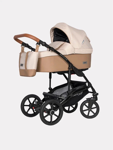 Рама коляски оснащена современными системами для комфортных прогулок по любым дорогам. Это качественная регулируемая амортизация, инновационные шарикоподшипниковые колеса с полиуретановыми шинами, антишоковая система, защищающая от удара передних колес (Anti Shock System), система регулировки жесткости подвески HDA (Heavy Duty Absorption), система быстрого съёма передних колес QRS (Quick Release System). Передние колеса имеют поворотный механизм, который легко блокируется при поездках по бездорожью. Для удобства родителей ручка регулируется по высоте в большом диапазоне. Есть вместительная сумка- корзина для покупок и специальная сумка для родителей в цвет коляски.