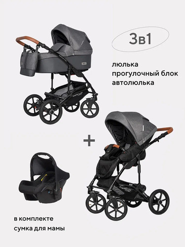 В комплекте: сумка для мамы, автокресло и адаптеры.