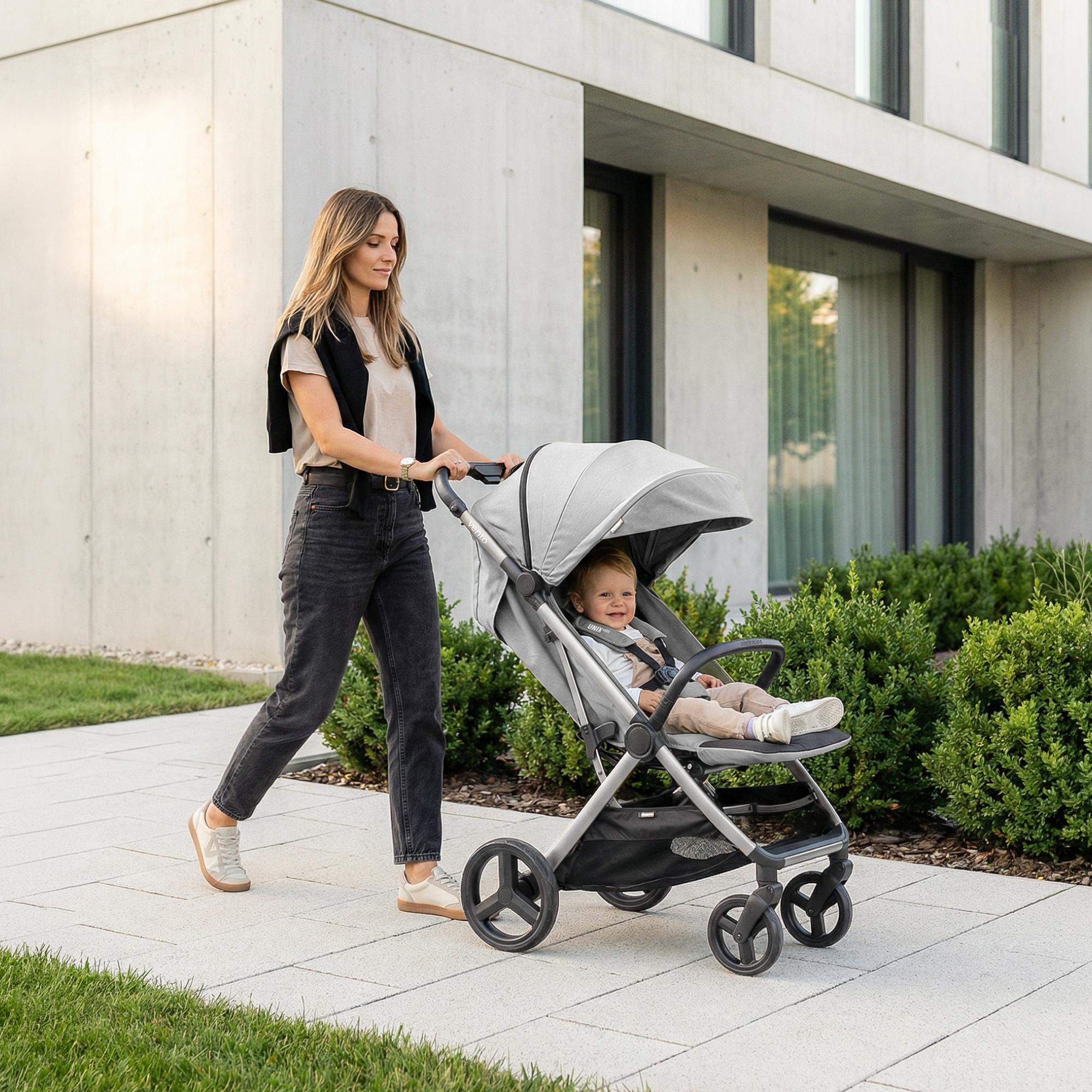Коляска прогулочная всесезонная UNIX Kids Vento — это воплощение современных технологий, премиального дизайна и заботы о комфорте вашего малыша. Модель разработана для детей с максимальным весом до 22 кг. Надежное транспортное средство для малыша в любую погоду и на любой местности. Это идеальный выбор для родителей, которые ценят стиль, безопасность и практичность. Прогулочная коляска UNIX Kids Vento создана для родителей, которые любят много и долго гулять при любой погоде, бывать в дальних путешествиях на личном автомобиле, поезде или самолете. Одно движение руки — и детская коляска сложена. Ещё одно — и вы уже в лифте, в машине, на прогулке или на курорте. Vento следует за вами, а не наоборот.