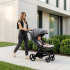 Спинка и положения: прогулочный блок имеет три комфортных положения: сидя (94°), полулёжа (134°) и лёжа (167°). Регулировка осуществляется простым рычагом, что позволяет быстро адаптировать спинку под нужды ребёнка. Капюшон из ткани с защитой от ультрафиолета SPF50+ раскрывается широко и надежно защищает от солнца, ветра и дождя. Смотровое вентиляционное окно на магнитной застёжке позволяет всегда держать малыша в поле зрения и обеспечивать постоянный приток свежего воздуха, создавая комфортный микроклимат внутри коляски.